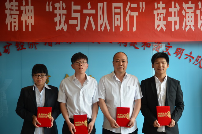 激揚(yáng)的青春最美麗。選手們的激情演講深深地打動(dòng)了在場(chǎng)的每一位評(píng)委和觀眾,贏得了一陣陣熱烈的掌聲。演講結(jié)束,勞動(dòng)人事部選手馮雪榮獲一等獎(jiǎng),地調(diào)所選手夏含、雷扛分獲二等獎(jiǎng),后勤服務(wù)中心黃鷹、經(jīng)濟(jì)工作部選手許婷婷、工程公司選手劉科科分獲三等獎(jiǎng)。我隊(duì)隊(duì)長(zhǎng)王根寶為獲獎(jiǎng)選手頒發(fā)了榮譽(yù)證書。黨委書記王戰(zhàn)社為獲得2015年度的優(yōu)秀團(tuán)員、團(tuán)干頒發(fā)了榮譽(yù)證書。